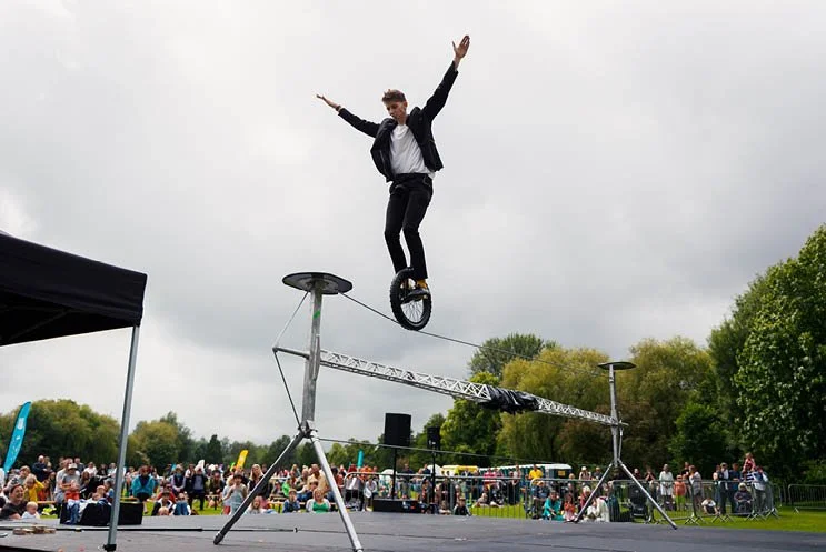 Seine artistische Karriere startete Sam Goodburn auf dem Einrad, mit dem er sich schon bald nationale Meriten verdiente. Danach brachte er sich das Jonglieren bei und entdeckte nebenher noch sein komödiantisches Talent. Seine einzigartigen Fähigkeiten, kombiniert mit seiner Leichtigkeit, das Publikum zum Lachen zu bringen, sind ein grossartiges Rezept für eine wundervolle Zirkus-Comedy-Show.